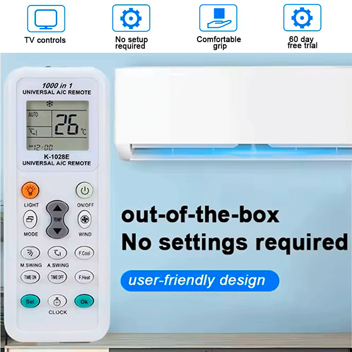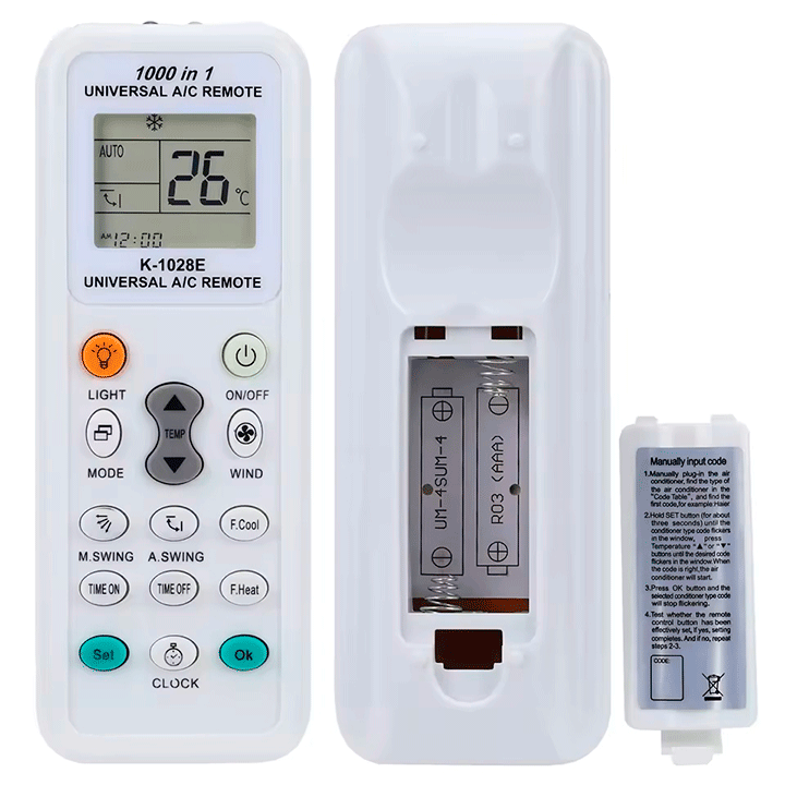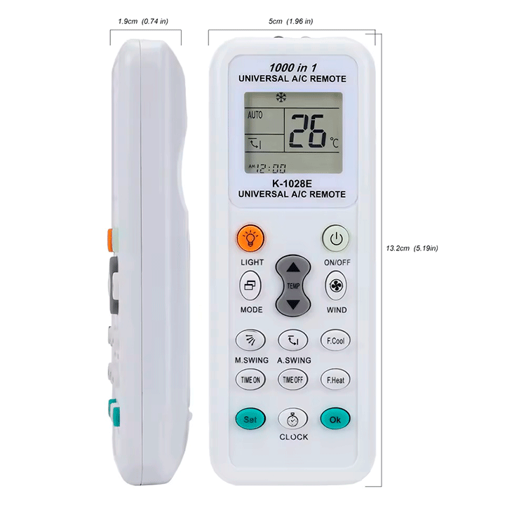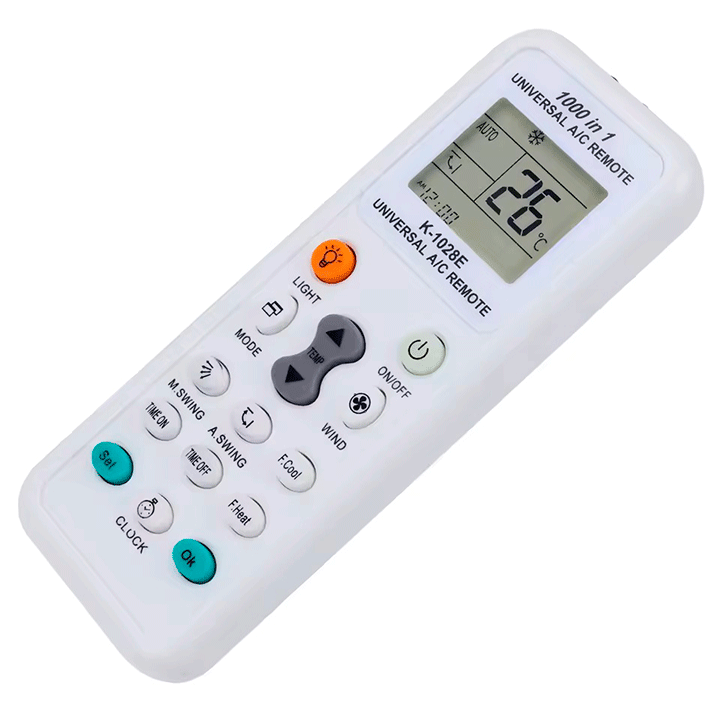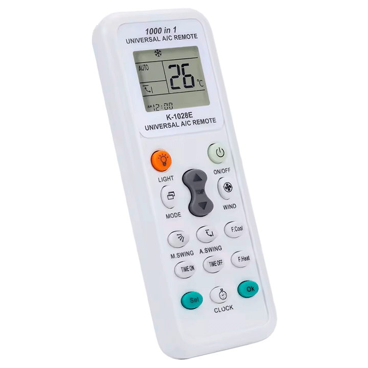 El control remoto universal K-1028E es la solución perfecta para sustituir tu mando original. Con una interfaz sencilla y funciones avanzadas, es compatible con la mayoría de marcas líderes en sistemas de aire acondicionado split.